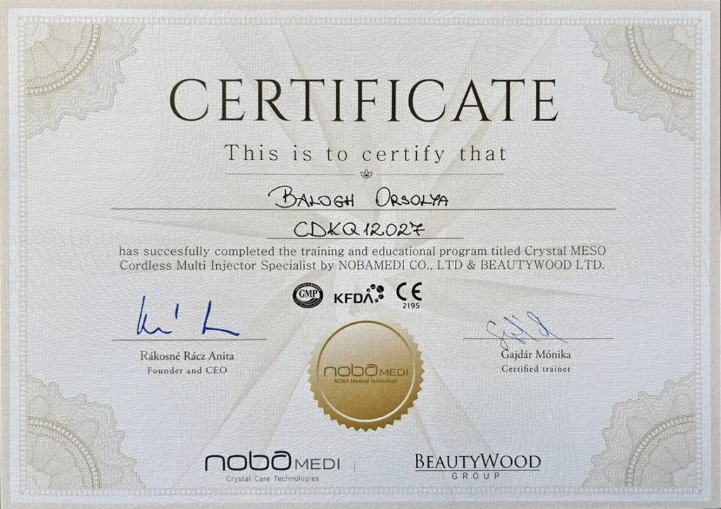 2021-ben elvégeztem a Bőresztéta képzést is, hogy holisztikus szemlélettel támogathassam a vendégeim szépülését.